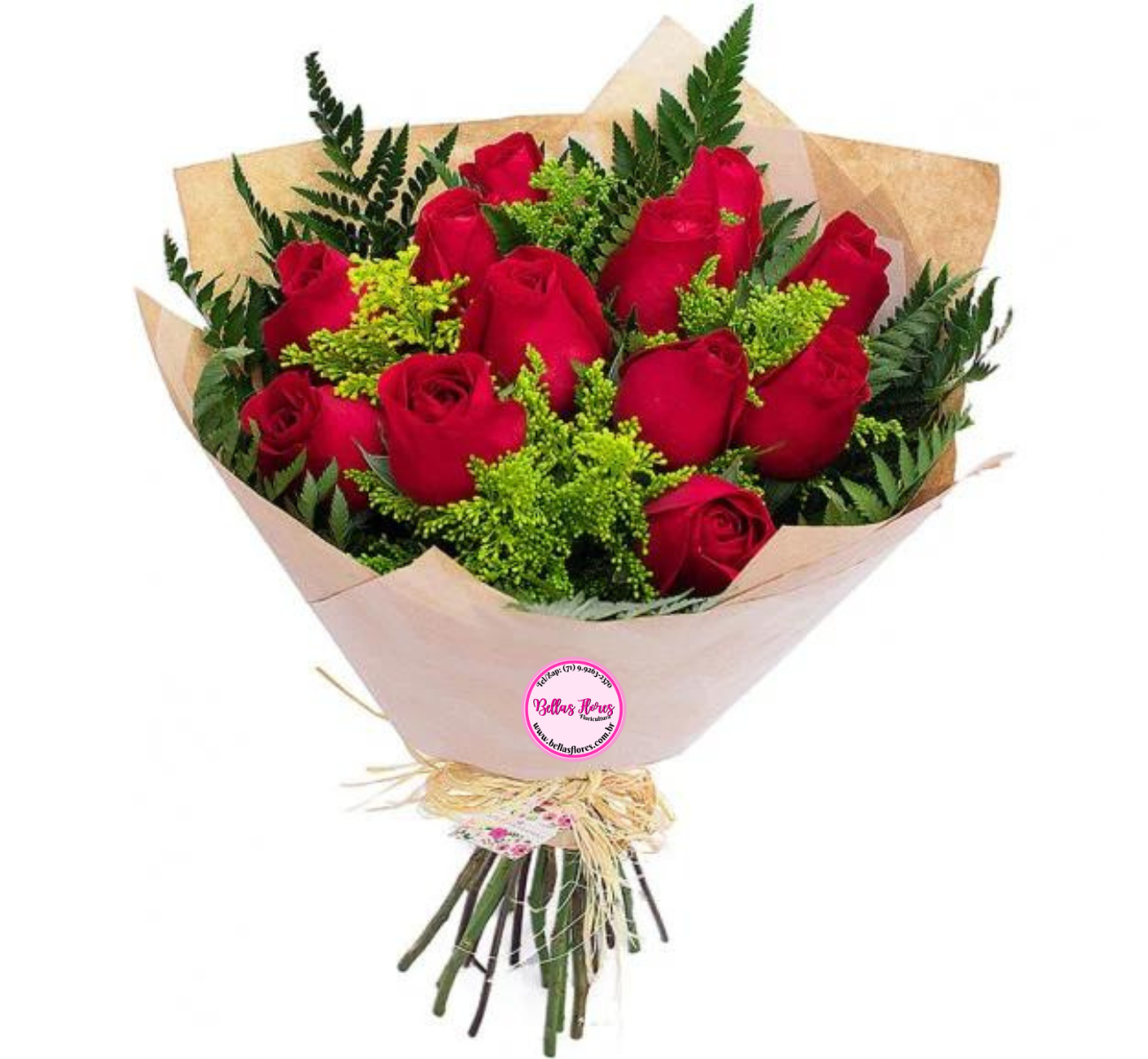Buque de Rosas (12 unidades) no Kraft com folhagens.